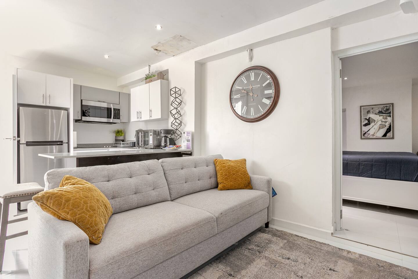 Salt in the Air, Sand in Your Hair❗️ Indulge in our upscale beach retreat designed for 6-7 guests, nestled in the heart of a lively oceanside neighborhood! Mere steps from the sun-kissed shores, vibrant nightlife, and shopping delights. Enjoy a fully equipped kitchen, a luxurious king-size bedroom, a modern bath, and access to a pool — all the amenities you need for a perfect getaway. → Soundproof Windows | A/C → Gated Parking → Fast WiFi 🛜 → San Juan Airport – 3-min drive