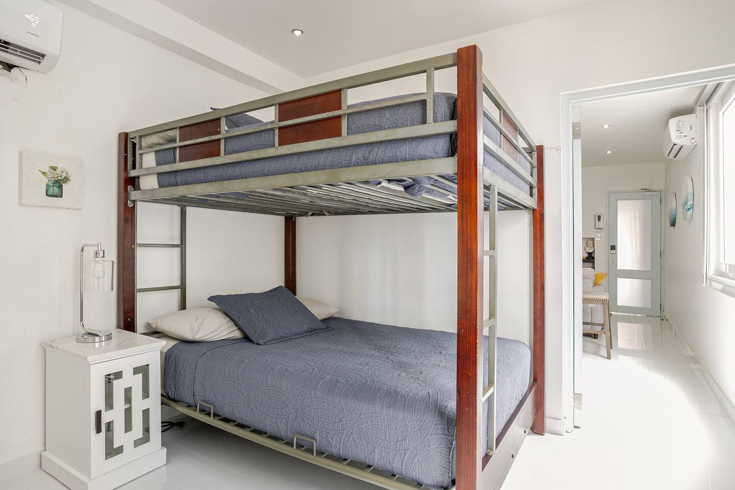 Welcome to Your Ultimate Isla Verde Retreat Step into a thoughtfully curated oasis where modern elegance meets tropical tranquility. Designed with your comfort in mind, this 2-bedroom gem invites you to relax, recharge, and make unforgettable memories. Located in the heart of Isla Verde, it combines luxurious living spaces with unbeatable access to Puerto Rico’s finest attractions. Inside, the open-plan living and kitchen area is perfect for unwinding and reconnecting. The plush sofabed in the living room provides a cozy spot to relax, while classic board games promise hours of laughter and bonding with loved ones. The fully equipped kitchen, complete with modern appliances and a charming breakfast bar, is ready to inspire your culinary creations. ✔ 5⭐️ Location ✔ Shared Pool ✔ King Bed ❖ LIVING ROOM ❖ Now, let's step into the inviting living room, seamlessly connected to the kitchen. A luxurious sofa awaits, beckoning you to kick up your feet and share some precious moments with your loved ones. We've also got a collection of board games, perfect for some good old-fashioned fun and laughter. As you sink into the plush sofa, you'll feel the weight of the modern-day hustle and bustle melt away from your shoulders. It's a space designed for relaxation and rejuvenation, where worries seem to vanish into the cozy embrace of the sofa. What's more, you have a direct view of the wall-mounted HDTV. Whether you're whipping up a meal in the kitchen or lounging on the sofa, you can stay engaged with all the on-screen action, ensuring that every moment is filled with entertainment and togetherness. ✔ Comfortable Sofa ✔ HDTV ✔ Open Plan ❖️ KITCHEN & DINING ❖ Make your way to the kitchen, where an open layout seamlessly merges with the living room and dining area. It's a roomy and inviting space that beckons you to whip up delightful meals using an array of modern appliances – the stove, microwave, refrigerator, freezer, toaster, and, of course, a trusty coffee maker for your daily caffeine fix. You'll discover a well-stocked pantry with all the spices and herbs needed to infuse your dishes with flavor and flair. As you craft your culinary creations, gather along the cozy breakfast bar-style seating for three, nestled just around the corner of the kitchen in a charming nook. It's the perfect spot to savor your meals with your loved ones! ✔ Microwave ✔ Stove ✔ Coffee Maker ✔ Refrigerator ✔ Sink - Hot & Cold Water ✔ Silverware ✔ Pots & Pans ✔ Garbage Disposal ✔ Breakfast Bar With Seating for 4 ❖️ BEDROOM ARRANGEMENTS ❖ Step into the 1st bedroom, the master bedroom, and let it welcome you with open arms. Here, a luxurious king-sized bed awaits, promising to cradle you in a cocoon of pure relaxation. The coastal accents on the walls transport you to seaside serenity, even as you unwind inland. With a spacious dresser, there's plenty of room for your clothes, ensuring convenience without compromise on comfort. Also the big Hotel style bathroom In the 2nd bedroom, you'll find another cozy haven. A queen bunk bed beckons, offering respite for all after your adventurous days. An HDTV graces this room, ready to entertain you in the evening. Whether it's a movie night or catching up on your favorite YouTube channels, the choice is yours. And here's the cherry on top – you have full control over the apartment's A/C, promising you a night of pure, personalized comfort. ♛ Bedroom 1: King Sized Bed, walking closet, HDTV ♛ Bedroom 2: Queen Bunk Beds & HDTV The bedrooms are equipped with the following amenities ✔ Premium Pillows, Linens, and Sheets ✔ Comfortable Beds ✔ Natural Lighting ❖️ BATHROOM ❖ Head to the modern and inviting bathroom located in the master bedroom, where you can refresh and rejuvenate with your own walk-in shower. The magic of this shower isn't just in its sleek design—it's a hydromassage wonder! Turn it on, and feel the gentle jets of water cascade over you, giving your tired muscles a soothing massage as you wash away the day's adventures in the local area. Shampoo, conditioner, and body wash are all there, waiting to pamper you, making sure you leave feeling not just clean, but truly refreshed and revitalized. ✔ Soft Towels ✔ Shower ✔ Modern Design ❖ POOL ❖ Dive into the shared 25-meter pool during your stay, and let the cool waters embrace you. It's your perfect oasis, whether you're craving a quick, refreshing dip to wake up your senses or longing to glide through the water, stroke by stroke, as the sun begins to set. With poolside hours from 8 AM to 8 PM, you have the luxury of flexibility, ensuring you can enjoy this aquatic haven at your own pace, whenever you desire. ✔ Shared Pool Building Amenities to Enhance Your Stay: • Shared Pool: Dive into the refreshing pool located in the lobby area—a perfect spot to cool off after a day at the beach. • 24/7 Laundry Room: Convenient and coin-operated, ideal for longer stays or quick refreshes. • On-Site Breakfast Restaurant: Start your mornings with a delicious local or international breakfast without leaving the building. • Souvenir Store: Take home a piece of Puerto Rico with charming keepsakes just steps from your door. • Small Pub/Bar: For those who love a littel nightlife, the building includes a small pub/bar in the basement where you can unwind and enjoy the vibrant PR atmosphere without leaving the property. Convenient and coin-operated, ideal for longer stays or quick refreshes. • Walgreens 24/7: In not in the building but next door Why Guests Love It Here: ✔ Prime location in Isla Verde ✔ Small apt with stylish interiors and modern amenities ✔ Shared pool and convenient building facilities ✔ Walking distance to beaches, dining, and entertainment ✔ Close proximity to the airport, Cruise Piers and Old San Juan