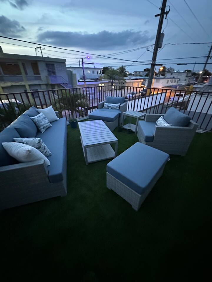 Step into a world of comfort and style in this inviting retreat. The interior of this home boasts tasteful décor and comfortable furnishings that beckon you to relax and unwind. From the cozy living room with its generous sofa and entertainment options to the fully equipped kitchen, complete with modern appliances and all the essentials, every inch of this space is designed to make your stay enjoyable. The three bedrooms promise a peaceful night's sleep, with soft linens and a thoughtful arrangement. And don't forget the private patio, perfect for morning coffee or evening wine, and the shared patio on the upper level, a great place to gather with friends and family under the starry skies. Nestled in the vibrant town of Carolina, Puerto Rico, this Airbnb enjoys a prime location. You'll find yourself conveniently close to the SJU - Luis Munoz Marin International Airport, just a short drive away. Additionally, the San Juan Cruise Port and a wealth of other major attractions are within easy reach. Whether you're in search of sun-soaked beaches, historical charm, or delectable dining, this location offers a diverse range of experiences to explore and enjoy in beautiful Puerto Rico. ✔ Private Patio ✔ Shared Patio ✔ Cozy Bedrooms ✔ Dedicated Workspace