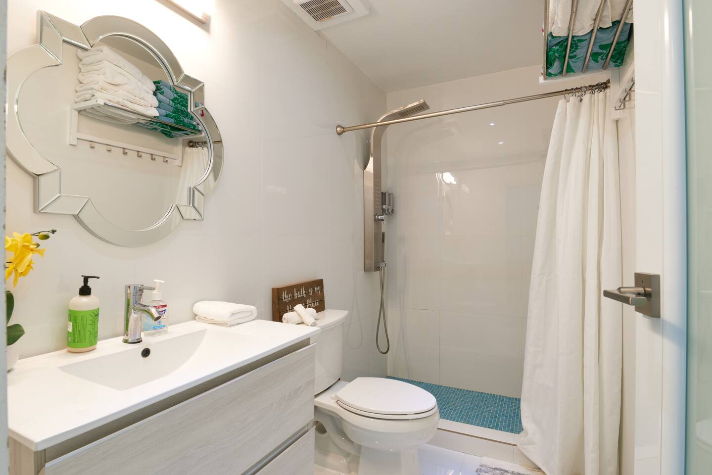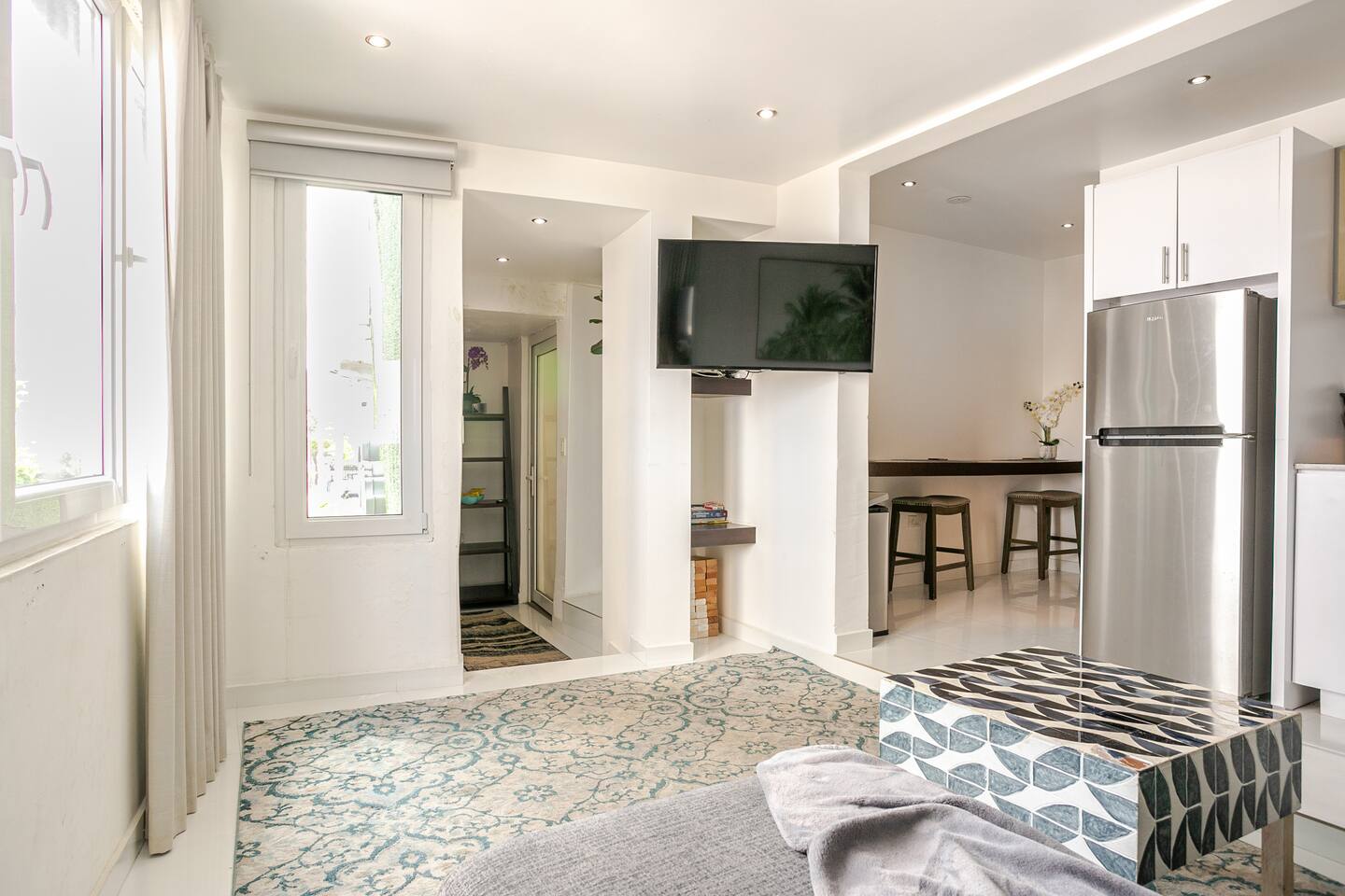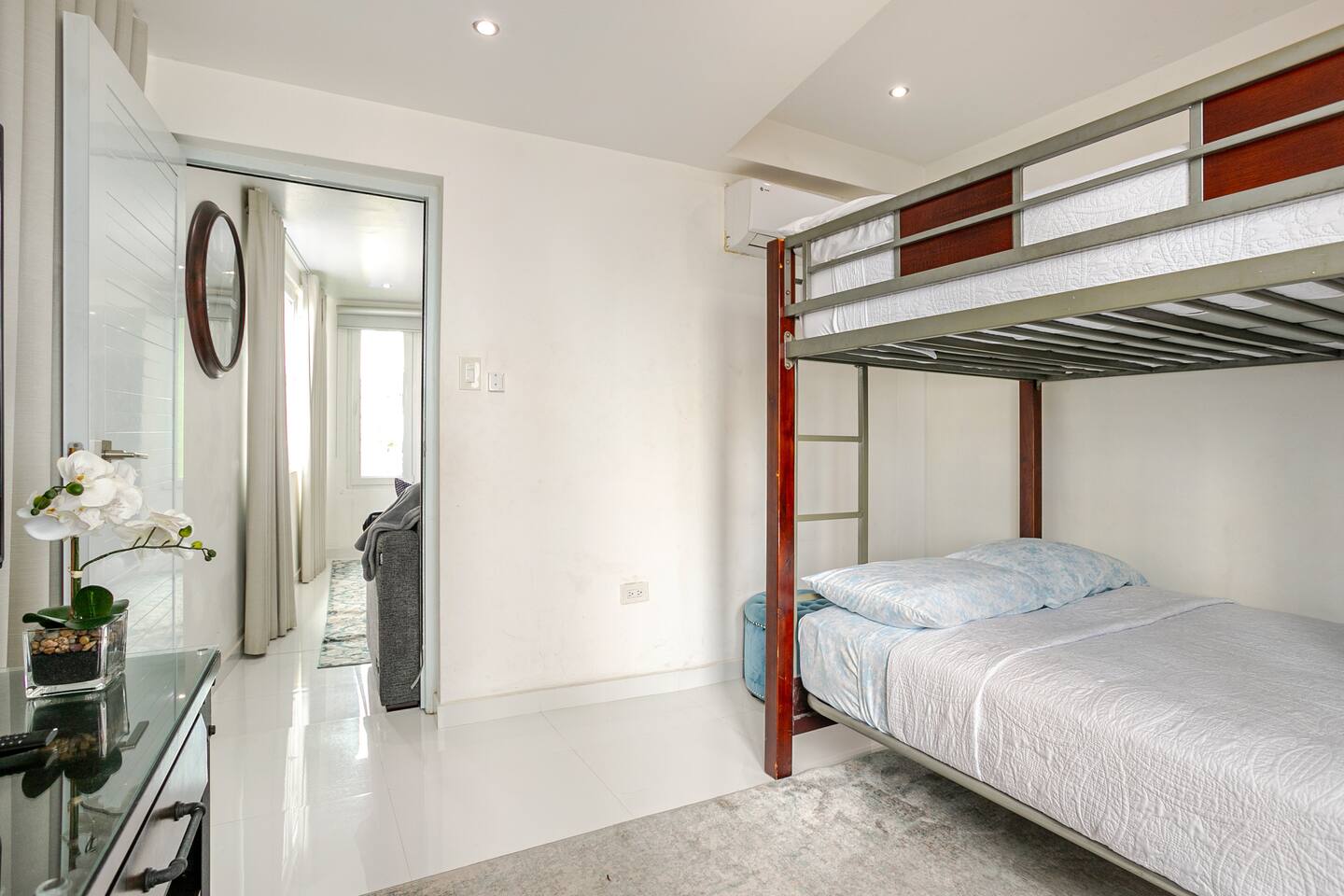 Step into the ❤️heart of our welcoming retreat, where indoor comfort and outdoor delight seamlessly converge. Within, you'll find a haven of relaxation, complete with an open living room and kitchen area designed for comfort. Sink into the plush leather L-shaped sofa, with some classic board games that promise hours of shared fun and laughter. Meanwhile, the well-equipped kitchen stands ready to assist in your culinary adventures, and a cozy breakfast bar-style seating area provides the perfect setting to savor your creations. And just beyond your doorstep lies a shared pool, a watery oasis that invites you to bask in the sun or take a refreshing dip. With every splash, you'll wash away the cares of the day and embrace pure relaxation. But that is not all, after enjoying the moments with your loved ones make your way to the master bedroom, fit with a glorious and comfortable king sized bed, promising a blissful nights sleep As you step outside, the enchanting location unfolds before you. Nestled in a vibrant neighborhood, our retreat is just moments away from the area's most enticing attractions. Pristine beaches, renowned hotels, casinos, and a wealth of shopping and dining options await your exploration. The conveniences of supermarkets and a pharmacy are close at hand, ensuring that your needs are met with ease. Additionally, a myriad of thrilling water sports, from paddle boarding to kayaking, beckon the adventurous. And when it's time to venture further, the historic charm of Old San Juan is a mere 10-minute drive away, while the airport is just 3 minutes from your door, ensuring a smooth journey to and from your unforgettable retreat. ✔ 5⭐️ Location ✔ Shared Pool ✔ King Bed ❖ LIVING ROOM ❖ Now, let's step into the inviting living room, seamlessly connected to the kitchen. A luxurious leather L-shaped sofa awaits, beckoning you to kick up your feet and share some precious moments with your loved ones. We've also got a collection of board games, perfect for some good old-fashioned fun and laughter. As you sink into the plush sofa, you'll feel the weight of the modern-day hustle and bustle melt away from your shoulders. It's a space designed for relaxation and rejuvenation, where worries seem to vanish into the cozy embrace of the sofa. What's more, you have a direct view of the wall-mounted HDTV. Whether you're whipping up a meal in the kitchen or lounging on the sofa, you can stay engaged with all the on-screen action, ensuring that every moment is filled with entertainment and togetherness. ✔ Comfortable Sofa ✔ HDTV ✔ Open Plan & Spacious ❖️ KITCHEN & DINING ❖ Make your way to the kitchen, where an open layout seamlessly merges with the living room and dining area. It's a roomy and inviting space that beckons you to whip up delightful meals using an array of modern appliances – the stove, microwave, refrigerator, freezer, toaster, and, of course, a trusty coffee maker for your daily caffeine fix. You'll discover a well-stocked pantry with all the spices and herbs needed to infuse your dishes with flavor and flair. As you craft your culinary creations, gather along the cozy breakfast bar-style seating for three, nestled just around the corner of the kitchen in a charming nook. It's the perfect spot to savor your meals with your loved ones! ✔ Microwave ✔ Stove ✔ Coffee Maker ✔ Refrigerator ✔ Sink - Hot & Cold Water ✔ Silverware ✔ Pots & Pans ✔ Garbage Disposal ✔ Breakfast Bar With Seating for 3 ❖️ BEDROOM ARRANGEMENTS ❖ Step into the 1st bedroom, the master bedroom, and let it welcome you with open arms. Here, a luxurious king-sized bed awaits, promising to cradle you in a cocoon of pure relaxation. The coastal accents on the walls transport you to seaside serenity, even as you unwind inland. With a spacious dresser, there's plenty of room for your clothes, ensuring convenience without compromise on comfort. In the 2nd bedroom, you'll find another cozy haven. A queen bunk bed beckons, offering respite for all after your adventurous days. An HDTV graces this room, ready to entertain you in the evening. Whether it's a movie night or catching up on your favorite YouTube channels, the choice is yours. And here's the cherry on top – you have full control over the apartment's A/C, promising you a night of pure, personalized comfort. ♛ Bedroom 1: King Sized Bed ♛ Bedroom 2: Queen Bunk Beds & HDTV The bedrooms are equipped with the following amenities ✔ Premium Pillows, Linens, and Sheets ✔ Comfortable Beds ✔ Natural Lighting ❖️ BATHROOMS ❖ Head to the modern and inviting bathroom, where you can refresh and rejuvenate with your own walk-in shower. The magic of this shower isn't just in its sleek design—it's a hydromassage wonder! Turn it on, and feel the gentle jets of water cascade over you, giving your tired muscles a soothing massage as you wash away the day's adventures in the local area. Shampoo, conditioner, and body wash are all there, waiting to pamper you, making sure you leave feeling not just clean, but truly refreshed and revitalized. ✔ Soft Towels ✔ Shower ✔ Modern Design ❖ SHARED POOL ❖ Dive into the shared 25-meter pool during your staymand let the cool waters embrace you. It's your perfect oasis, whether you're craving a quick, refreshing dip to wake up your senses or longing to glide through the water, stroke by stroke, as the sun begins to set. With poolside hours from 8 AM to 8 PM, you have the luxury of flexibility, ensuring you can enjoy this aquatic haven at your own pace, whenever you desire. ✔ Shared Pool