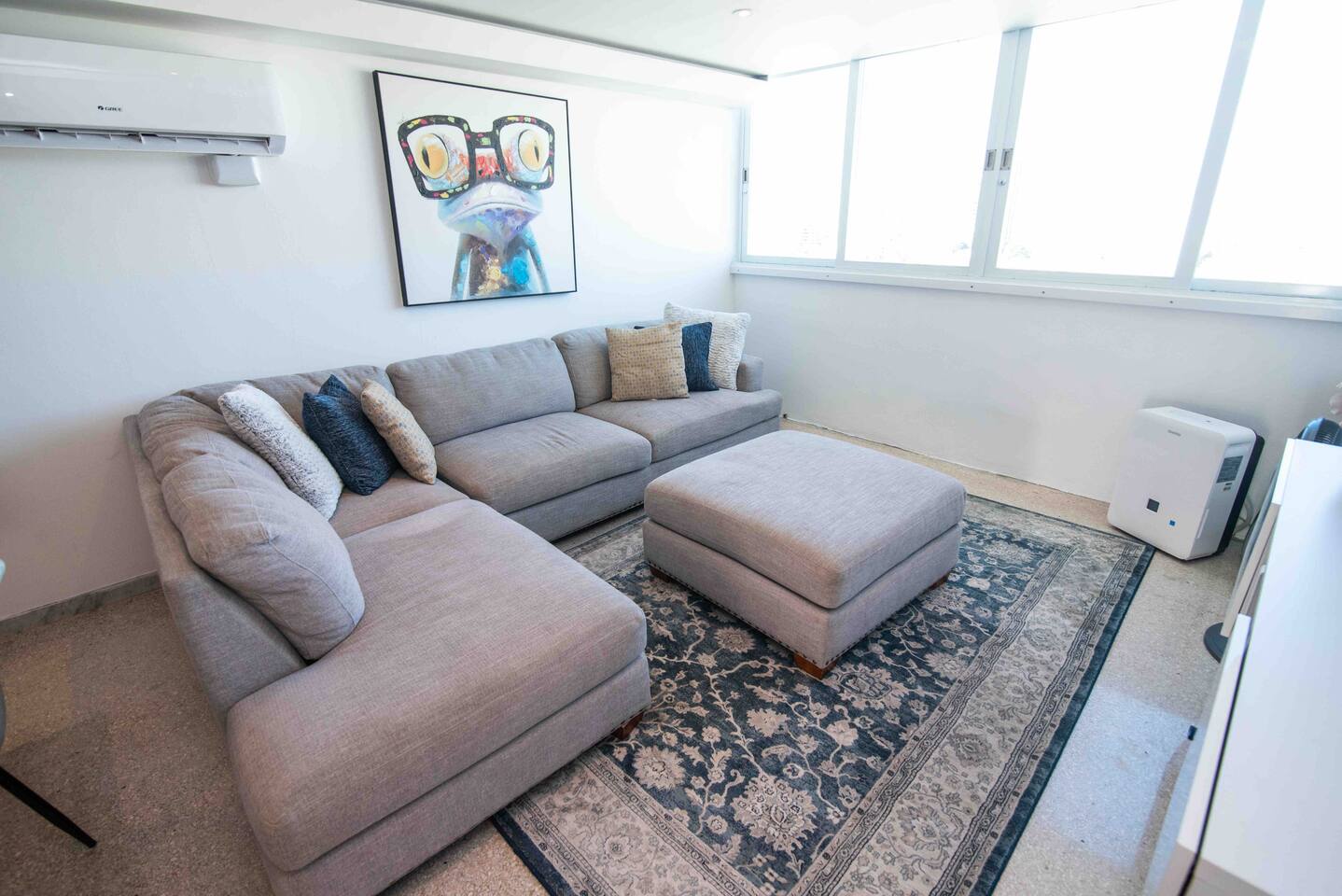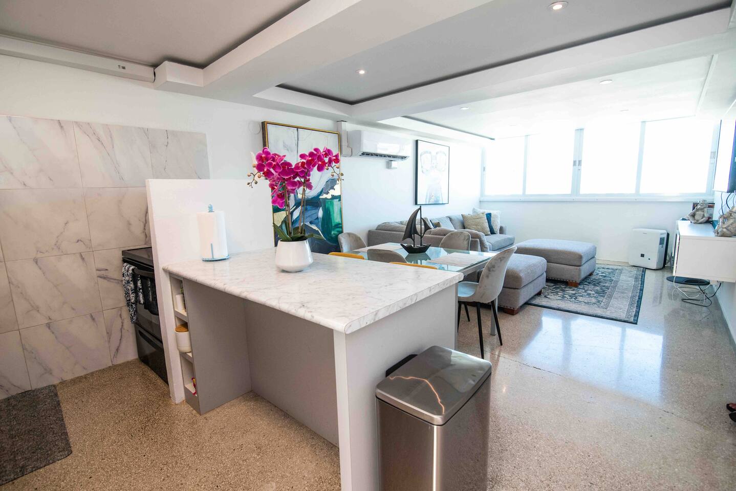 Discover this modern retreat, where natural light bathes the open-concept living area. Sink into the cozy L-shaped sofa, perfect for post-beach relaxation. The window offers views of the vibrant city skyline and the tranquil ocean, a mesmerizing spectacle after dusk. Nestled in San Juan's bustling Urban Art District, you're steps away from supermarkets, diverse restaurants, lively bars, and the historic old city. Ready to create everlasting memories? âś” Balcony âś” Modern âś” Prime Location
