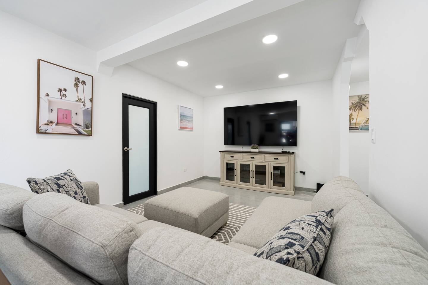 Welcome to your next San Juan escape, you'll discover a world of comfort and convenience. The bedrooms offer serene retreats, with the master bedroom's king-sized bed and wall-mounted 50β HDTV promising restful nights. Bedroom number 2, with its cozy queen-sized bed, complete with comfortable linens and pillows. While bedroom number 3 offers another full size and twin bunk bed and ample closet space, ensures peaceful slumber. The well-equipped kitchen stands ready for your culinary adventures, featuring everything from a stove to a coffee maker. And when it's time to dine, the inviting dining area with seating for six or the breakfast-bar style seating for three await your gatherings. In the open living room, a spacious sofa beckons, basking in the warm glow of natural light streaming through multiple windows. The 85β HDTV promises delightful evening entertainment, perfect for cozy nights with loved ones. But that is not all, step onto the private balcony and let the refreshing breeze and warm sun embrace you as you unwind in the outdoor furniture chairs. Venturing beyond our charming retreat, you'll find an ideal location. Just a short 8-minute stroll away lies the breathtaking Ocean Park Beach, where relaxation and seaside fun await. And right around the corner, you'll encounter Calle Loiza, a vibrant epicenter of nightlife boasting a diverse array of bars and restaurants. It's the perfect blend of tranquility and entertainment, ensuring your stay is both enjoyable and memorable. β Walking Distance to Ocean Park Beach β Private Balcony β King Bed β Prime Location β¨βΒ LIVING ROOM β β¨The living room is an integral part of our open and airy floor plan, seamlessly connected to the dining area. It's the ultimate spot for you and your cherished ones to unwind after a day filled with adventures. A generously sized, plush sofa beckons, urging you and your loved ones to sink in and let go. Sunlight streams in through multiple windows, casting a comforting, warm glow that envelops the entire space. From the expansive sofa, the 85β HDTV commands attention, promising delightful evening entertainment. Gather your loved ones, and relish cozy evenings together, as you enjoy perfect viewing and create cherished memories in this inviting living room. β Comfortable Sofa β 85" HDTV β Open Planβ¨β¨ βοΈ KITCHEN & DINING βΒ β¨β¨ When hunger beckons, our kitchen is your haven. It's a complete culinary hub, boasting a range of essential appliances, from the stove and oven for hearty meals to the refrigerator to keep your ingredients fresh. The microwave, toaster, blender, and coffee maker stand at the ready to make your cooking journey a breeze. Once your culinary masterpieces are prepared, gather around our inviting dining table, generously set for six. Or perhaps, opt for a cozy breakfast-bar style setup with seating for three, where you can enjoy your meals with a touch of casual charm. It's the perfect space to savor good food and even better company. β Microwave β Oven β Cooker β Wine Glasses β Toaster β Coffee Maker β Blender β Refrigerator β Dishwasher β Freezer β Sink - Hot & Cold Water β Silverware β Pots & Pans β Garbage Disposal β Indoor Dining Table With Seating for 6 β Fast WiFi and cable πΊ TV β¨β¨βοΈ BEDROOM ARRANGEMENTS β Β β¨ After a day filled with adventures and excitement, find solace in our inviting bedrooms. Step into the master bedroom, where a grand king-sized bed beckons, promising a night of deep, restful slumber. Above, a wall-mounted 55β HDTV offers entertainment options for your relaxation. Take advantage of the roomy closet to keep your attire neatly arranged and ready for the next day's adventures. Venture into the second bedroom, where a cozy full and twin Bunk Bed awaits. Its large closet ensures your belongings stay perfectly organized, and the AC guarantees an undisturbed night's sleep. This spacious room is your gateway to a tranquil dreamland. Lastly, discover bedroom number 3, another sanctuary complete with a queen-sized bed adorned with plush linens and pillows, inviting you to unwind. The generous closet space ensures your wardrobe remains in impeccable order, so you can begin each day feeling refreshed and ready for new experiences. β Bedroom 1: King Sized Bed, HDTV, AC & Closet β Bedroom 2: Queen Sized Bed & Closet, AC β Bedroom 3: Full and Twin Bunk Bed, AC & ClosetQueen Sized Bed & Closet β¨ The bedrooms are equipped with the following amenities β¨β Premium Pillows, Linens, and Sheets β Comfortable Beds β Natural Lighting β¨βοΈ BATHROOMS β β¨Moving on into the bathroom and embracing a world of rejuvenation. The walk-in shower beckons, its sleek, minimalist design promising a refreshing escape. As the water cascades down, let the worries of the modern world wash away. This space is equipped with all the essentials for your comfort. And there's more β a generously sized mirror, strategically positioned, awaits you to prepare and present your best self to the world. It's the perfect sanctuary to start or end your day feeling revitalized. β Soft Towels β Shower β Minimalist Design β¨β PRIVATE BALCONY β Step onto the private balcony that connects between Bedroom 1 and 2 and you'll find a comfortable retreat awaiting you. Take a seat on the outdoor furniture chairs, feeling the gentle warmth of the sun on your skin. The space is open and airy, with a refreshing breeze that rustles through the air. It's the perfect spot to unwind, whether you're sipping your morning coffee or gazing at the stars under a moonlit sky after your delicious meal. β Outdoor Furniture Seating β Safe Neighborhood β Private Balcony β You'll have access to the whole house β Self Check-in β Free parking Indulge in a worry-free getaway, where you can escape the stress of daily life and enjoy the comfort of 24/7 support. We are available via phone, text, or the Airbnb app at any time, you can rest assured tha