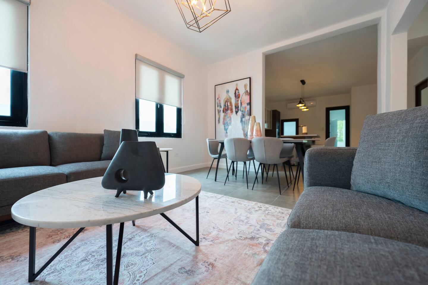 ❖ LIVING ROOM ❖ Starting off in the open-plan living room that flows seamlessly into the dining area and kitchen, you'll find a perfect blend of spaces designed to keep you and your loved ones connected. Relax on the comfortable sofas and enjoy watching your favorite shows on the HDTV, the ideal spot to unwind after a fun day exploring the local area. The modern and sleek design throughout ensures a comfortable and stylish experience. Easily grab your snacks from the kitchen and spend your evenings discussing the day's adventures or planning your next day’s activities. ✔ Comfortable Sofa ✔ HDTV ✔ Stylish & Open