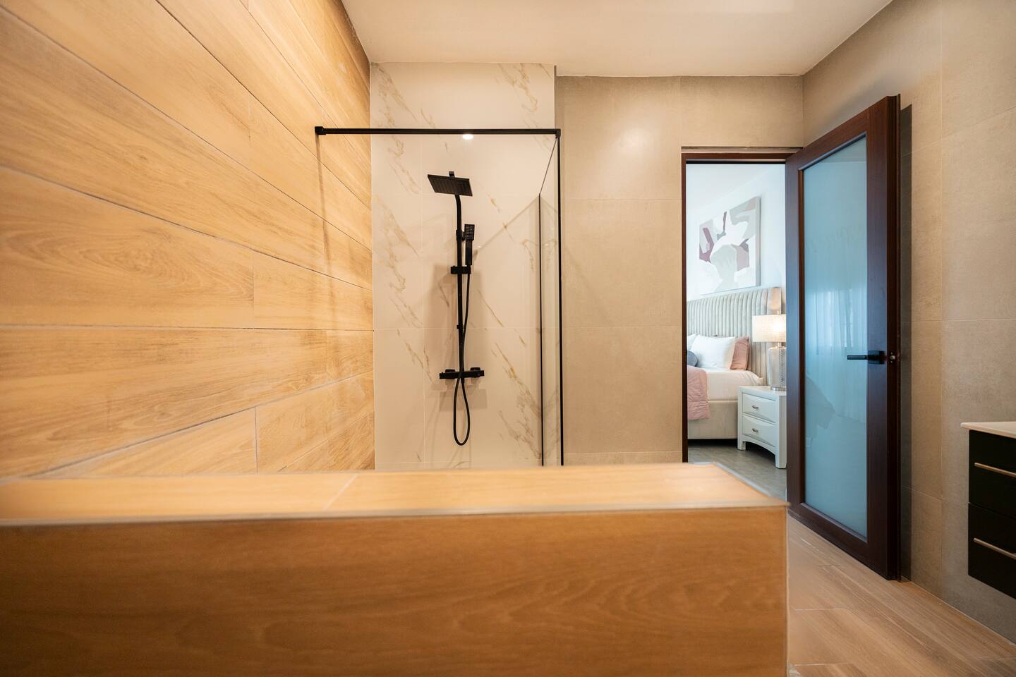 ❖️ BEDROOM ARRANGEMENTS ❖  Time for sleep? Head to one of the three comfortable bedrooms, each designed with your relaxation in mind. In bedroom one, sink into a cozy queen-sized bed that promises a blissful night's sleep. This room also features a dedicated workspace, perfect for catching up on work or finishing a project. Moving into the second bedroom, you'll find a luxurious king-sized bed and access to a small private balcony, ideal for waking up to fresh air each morning. The modern, comforting design continues here, complete with bedside lamps for evening reading. Enjoy the convenience of a large ensuite bathroom and a spacious walk-in closet to keep your clothes organized and ready. Lastly, step into the third bedroom, where a queen-sized bed and bedside lamps create a warm, inviting atmosphere. Natural light pours in through the window, brightening the room throughout the day. This bedroom also boasts a mirrored closet for ample storage and outfit checks. Like the second bedroom, it includes an ensuite bathroom, offering you a personal space to rejuvenate. ♛ Bedroom 1: Queen Sized Bed, Dedicated Workspace