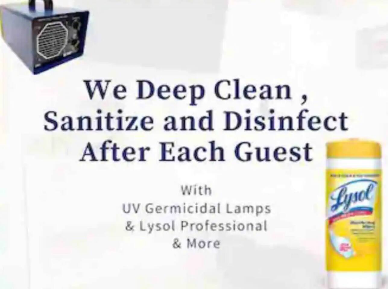 ✔ Iron The access to the pool deck and use of the pool facilities are indefinitely closed due to structural renovations. The access to the beach remains normal from 7:00 am to 7:00 pm. The nightly price has been reduced because of this inconvenience. Construction work is being done at the building every day from 10:00 am to 5:00 pm; therefore you may experience some noise at the apartment during those hours. We clean and disinfect the apartment following OSHA cleaning standards to prevent COVID19 contamination using professional cleaning products.